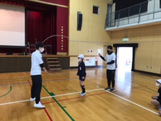 今年度のトップアスリート授業は、ダブルダッチパフォーマンスチームのFat man crewのメンバーの方をゲストティーチャーにお迎えし、授業を行いました。一見難しいと思われる技でも分かりやすく教えていただき、上手に縄を回してもらえたことで楽しく子どもたちは活動することができました。また休み時間にも挑戦できたらいいですね。今日はありがとうございました!