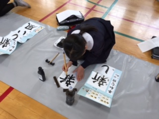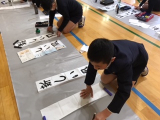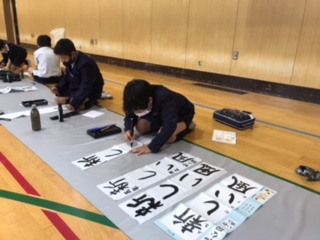 年が明けて初めての書写の授業。少し寒い講堂でしたが集中して一文字一文字しっかりと書いていました。