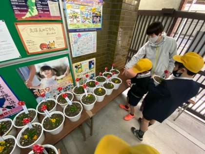 日頃お世話になっている地域の方に感謝の気持ちをこめて、子ども達が12月から大切にそだててきました。