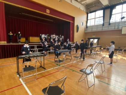 音楽で学習してきた合奏を今度3年生に披露します。その練習を講堂でしました。