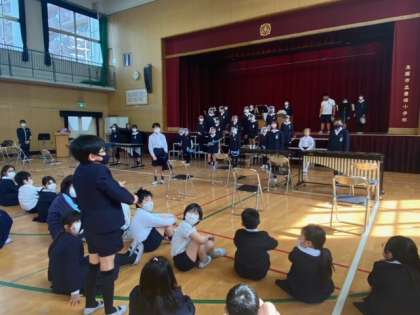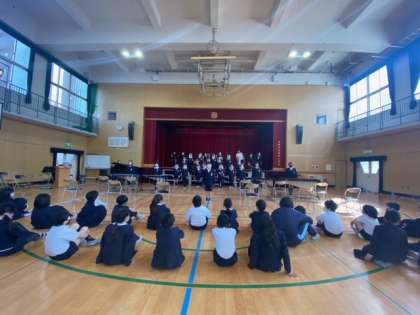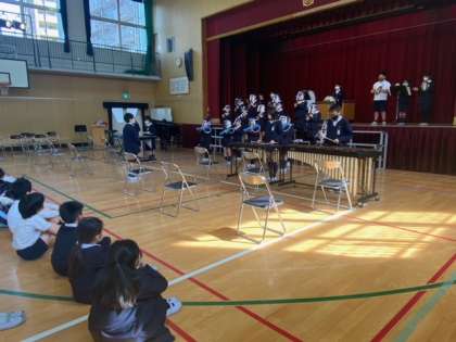今日は4年生が3年生を招待して音楽発表会がありました。