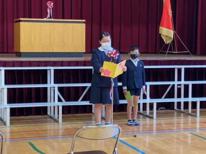 明日の入学式に向けて、新2年生は歓迎セレモニーの練習、新6年生は歓迎の言葉の練習をしました。