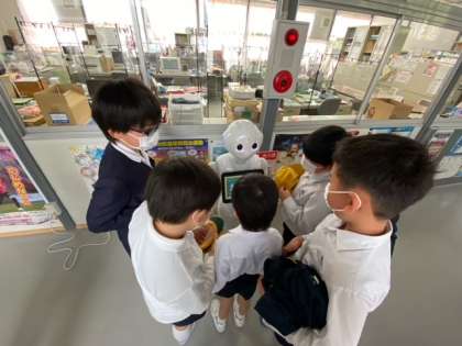 みんなのお目当てはペッパーくんです。ペッパーくんに写真を撮ってもらったり、ラジオ体操してもらったり、英語を話してもらったりしてとても楽しんでいました。