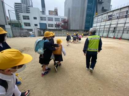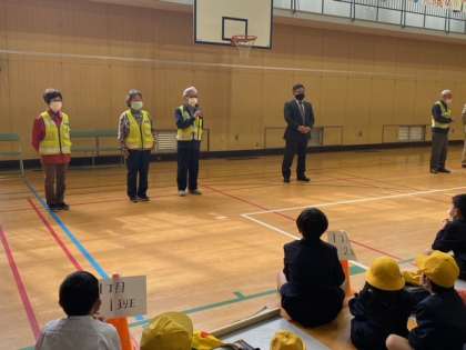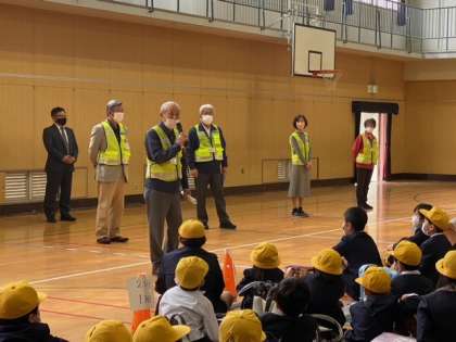 今日は地域別児童会の後、毎朝集団登校を見守ってくださっている「みまもりたい隊」の方々との対面式がありましま。