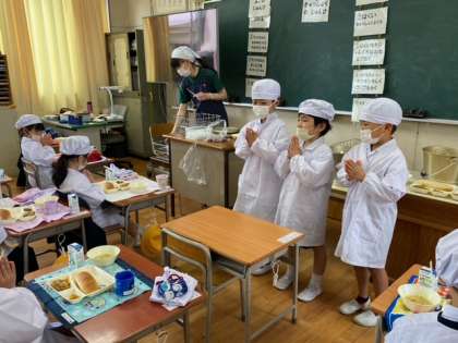 今日は新しい給食当番に交代しましたが、新しい当番さんも素早く準備ができるようになりました。