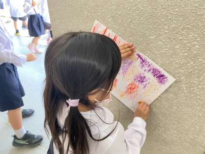 色々な模様をうつしとっているようです。みんな必死にでこぼこしたところを探して、たくさん模様をうつしとっていました。