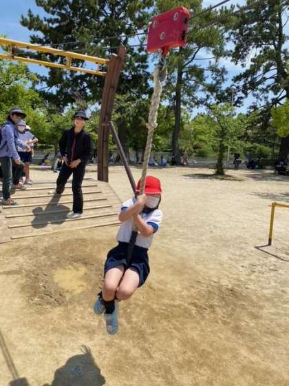 楽しい遊具がいっぱいです。すべり台やジップラインなどでたくさん遊びました。