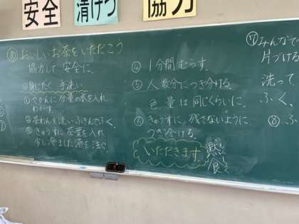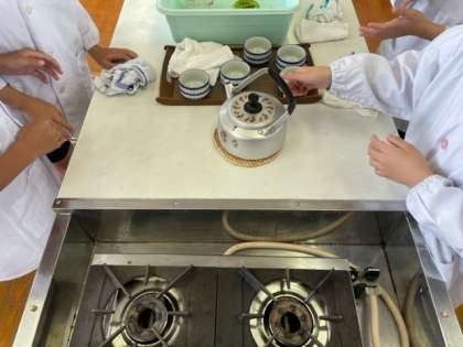 家庭科の学習でお茶をいれる学習をしています。