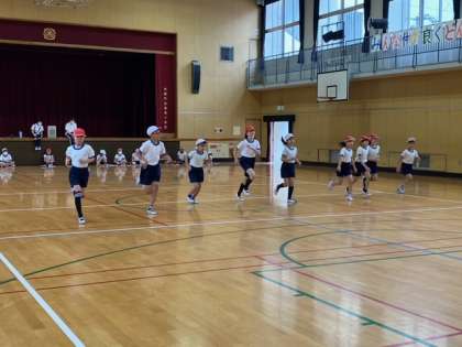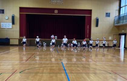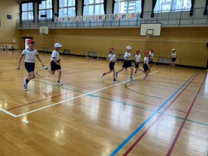 新体力テストの「シャトルラン」を実施しました。音楽のリズムに合わせて何回走れるかを測定していきます。