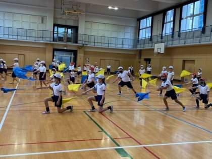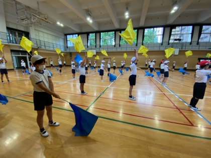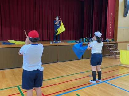 運動会に向けて練習に励んでいます。フラッグの新しい技もたくさん出てきています。