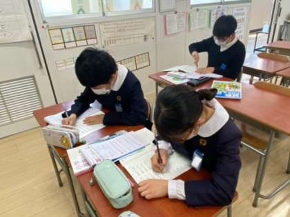 「対称な図形」のまとめをおこなっていました。この単元では線対称や点対称などいろいろな図形を学習しました。6年生にもなると図形も複雑になっています。でもしっかり練習問題も解けていました。
