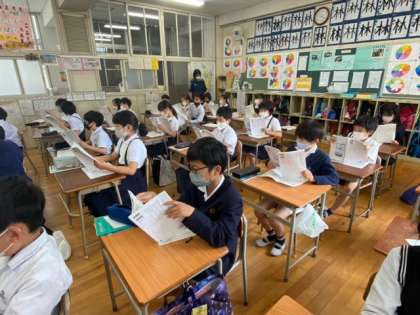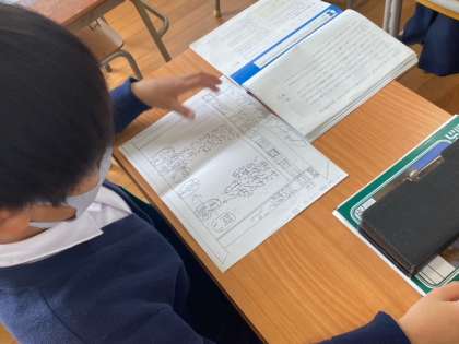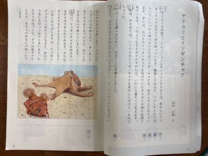 国語では説明文の「ヤドカリとイソンギンチャク」の学習をしています。