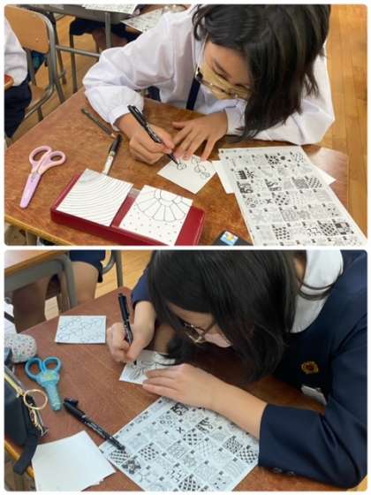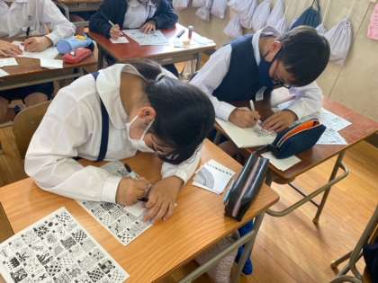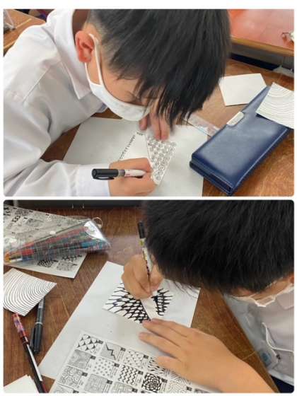 みんな模様を描くのに夢中で描いている時、教室の中はシーンとなっていました。