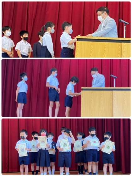 また今日は「ギャラリー表彰」がありました。一人一人校長先生から賞状を手渡されていました。