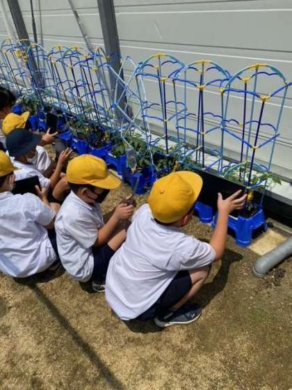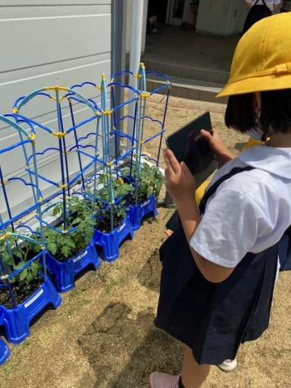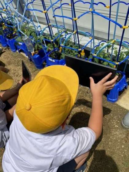 なので、新しいタブレットを使って今日はプチトマトの苗のを撮影しました!機種が変わってもみんなスムーズに使いこなしています!さすがですね。タブレットで撮影していると、教室に戻って写真を見直したり、拡大して見る事ができるのでとても便利です。
