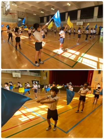 最後の練習はみんな気合をいれて励んでいました。フラッグのなびく音が一つにそろっていて、迫力が出ています。