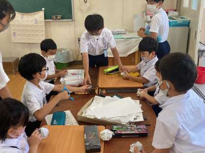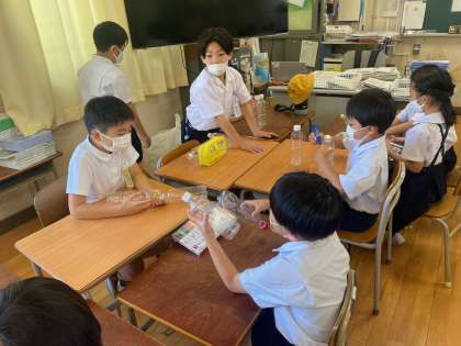 今日は豊崎わくわくフェスティバルに向けて、たてわり班でお店の準備をおこないました。