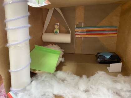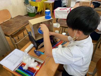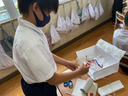図画工作の「ふくろの中には何が」で、みんな楽しい世界を袋の中につくっています!