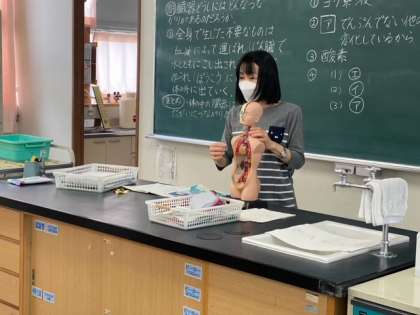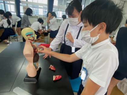 学習の最後には、人体模型を使ってどこにどんな臓器があるのか確認していきまして。みんな