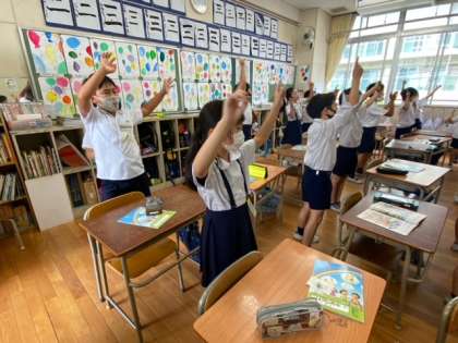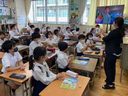 みんな先生に負けずおとらずノリノリです。元気いっぱい体も動かして歌って踊っていました!みているだけでこちらも元気になります。