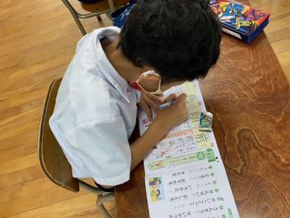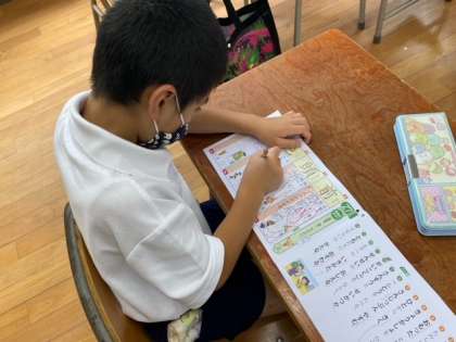 毎日漢字の学習をおこなっています。習った漢字を丁寧に練習していました。