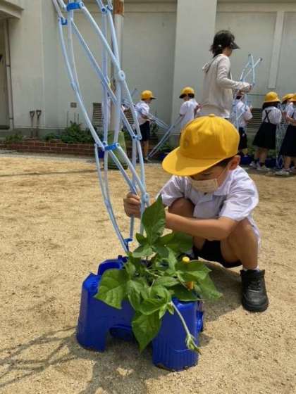 6月17日 「支柱をつけよう!」《生活科》【1年生】