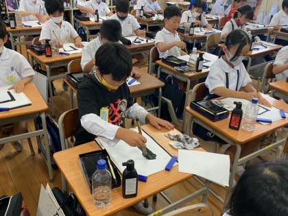 「とめ」を意識しながら、みんな真剣な表情でとりくんでいました。