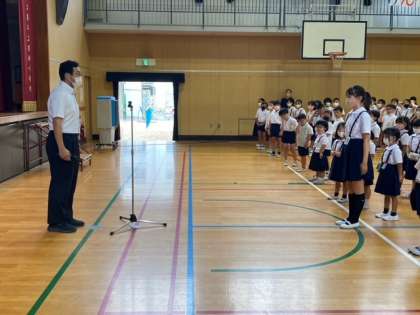 教頭先生から「暑い日が続いているのでしっかり水分補給をして体調管理を整えましょう」と、お話がありました。