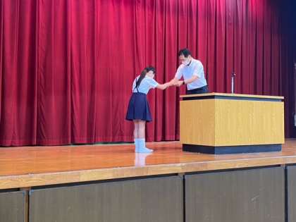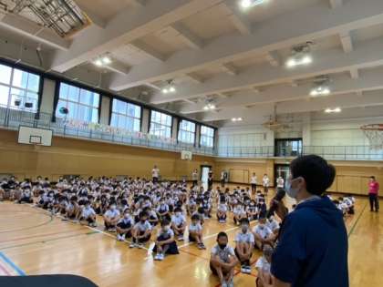 今学期の児童朝会は今日で最後になります。終業式まであと1週間です。しっかり夏休みに向けてまとめをしていきましょうね。