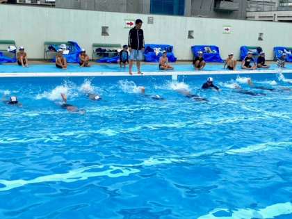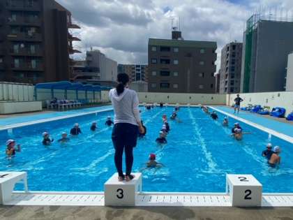 今日も2時間たっぷりプール学習を行いました。それぞれのコースに分かれて、どんどん泳ぎの練習をおこなっています。