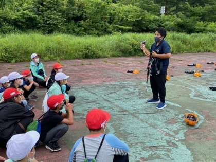 みんなとても楽しみにしているプログラムです。けれど危険も伴います。ヘルメットとハーネスをつけて行います。
