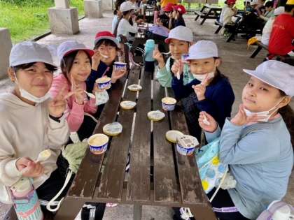 アルプスアドベンチャーが終わり宿舎に戻ってきておやつタイムです。