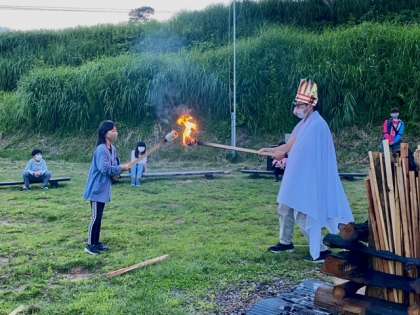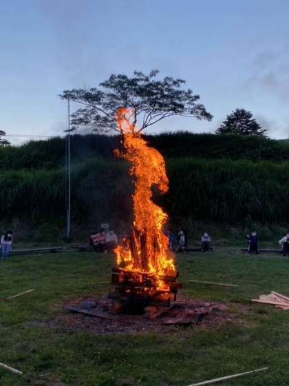 キャンプファイヤーは火の神が登場し、点火してキャンプファイヤーが始まりました!