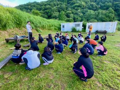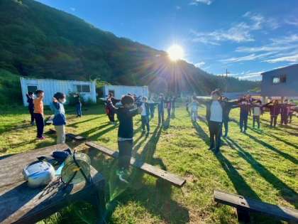 小鳥のさえずりが聞こえる爽やかな天候の中、朝の集いが行われました。