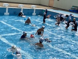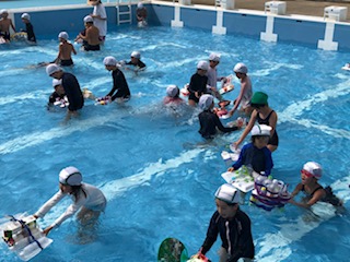 時間が経つにつれ、船をビート板にして泳いだり、船をプールサイドに置いてワニのように泳いだりする人も出てきました。みんな思い思いに楽しみましたね。