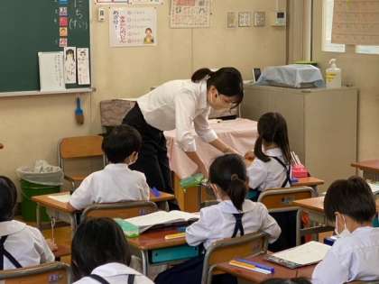 みんな先生の話をよく聞いて一生懸命授業に取り組んでいました。