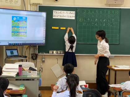 今日は実習生の先生の研究授業が行われました。算数の「ふえたり へったり」です。3つの数を1つの式にまとめる学習をおこないました。