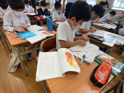 「サーカスのライオン」の物語文を読んで、登場人物の気持ちの変化や性格、情景について、場面の移り変わりと結びつけて具体的に想像していきました。