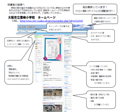 学校ホームページの閲覧方法についての手紙をあす配付します。学校ホームページでは,本日より閲覧可能です。