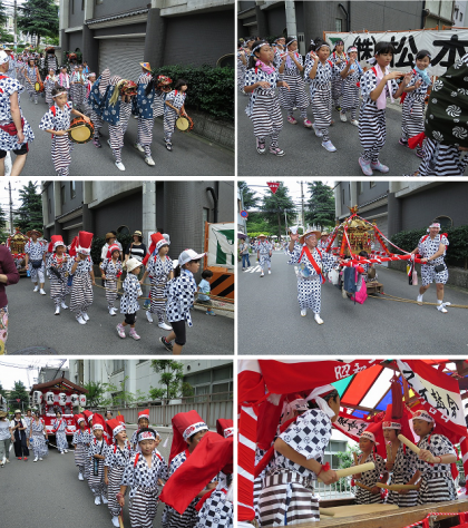 学校の北側の道路を練り歩いたお祭の一行は,16時過ぎに,無事に宮入しました。