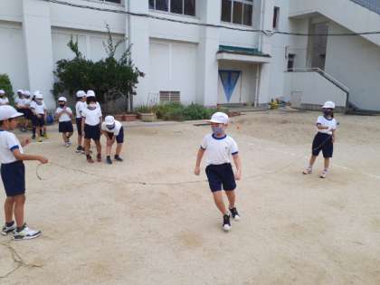 掘り終わったら、さつまいものつるを使った、大縄跳びにチャレンジしました。