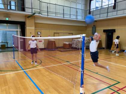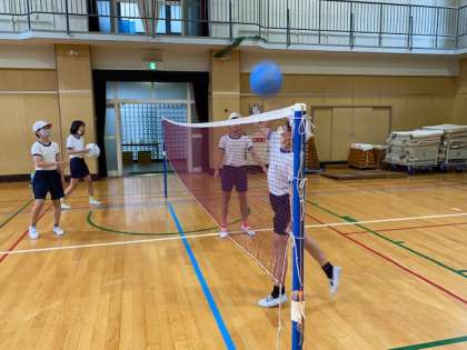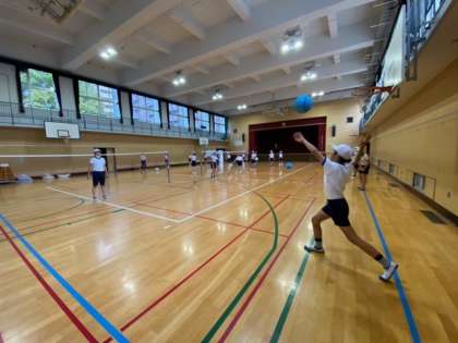 今日の体育では「ソフトバレーボール」でネットを出して練習を続けていきました。
