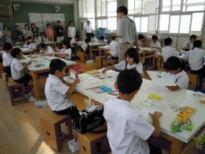 3年生の図画工作科で,「水彩絵の具」の学習を行いました。