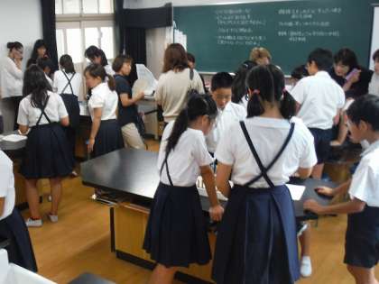 リトマス紙の使い方を学習し,きまりを守ってレモン水やせっけん水・酢・さとう水・塩水など8種類の水溶液の性質を調べました。