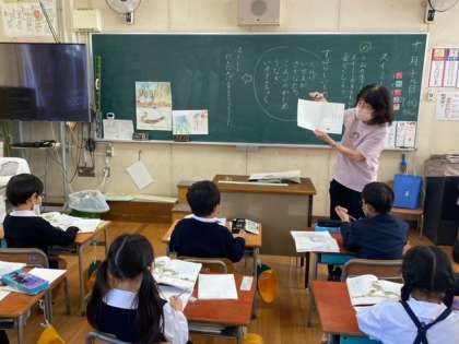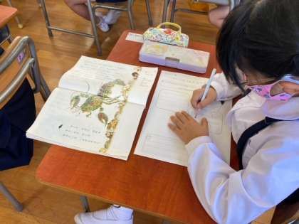 今日は海でいろいろな海の生き物に出会ったときのスイミーの気持ちを考えて音読をしていきました。