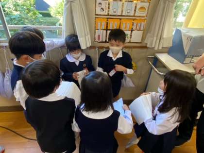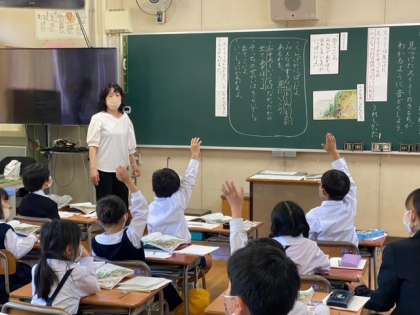 「スイミー」を読んで、スイミーが小さな魚の兄弟たちを見つけた時の様子を読み取り、それをもとに音読に生かしていきました。スイミーが考えた時の様子を動作化しながら一生懸命考えているスイミーの様子や気持ちを一人一人、しっかり考えていきました。