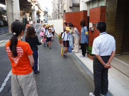 子どもたちはたくさんの方々に見守られ,安全に登校できました。ありがとうございました。週始めで声が小さい子どももいました。子どもたちから進んで元気よくあいさつできるよう,今後も繰り返し指導していきます。