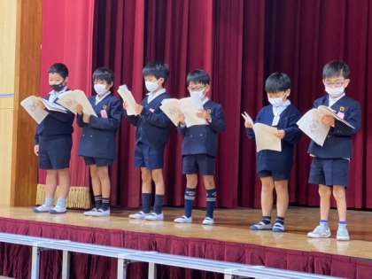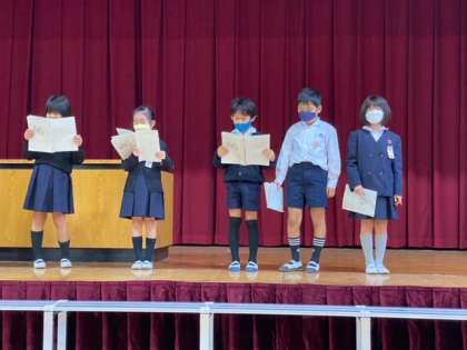 昨日から「学習発表会」にむけて講堂での練習が始まっています。