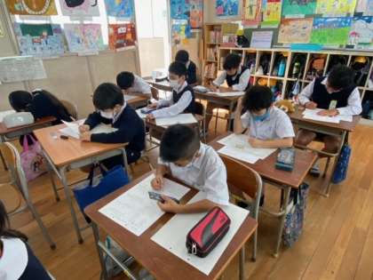 みんな一生懸命、テスト問題をといています。
