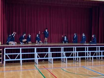 動きを少しずつ付けながら練習もしていきます。大きな声で抑揚をつけながら台詞を言うのはとっても難しいですが、頑張っていきましょう。